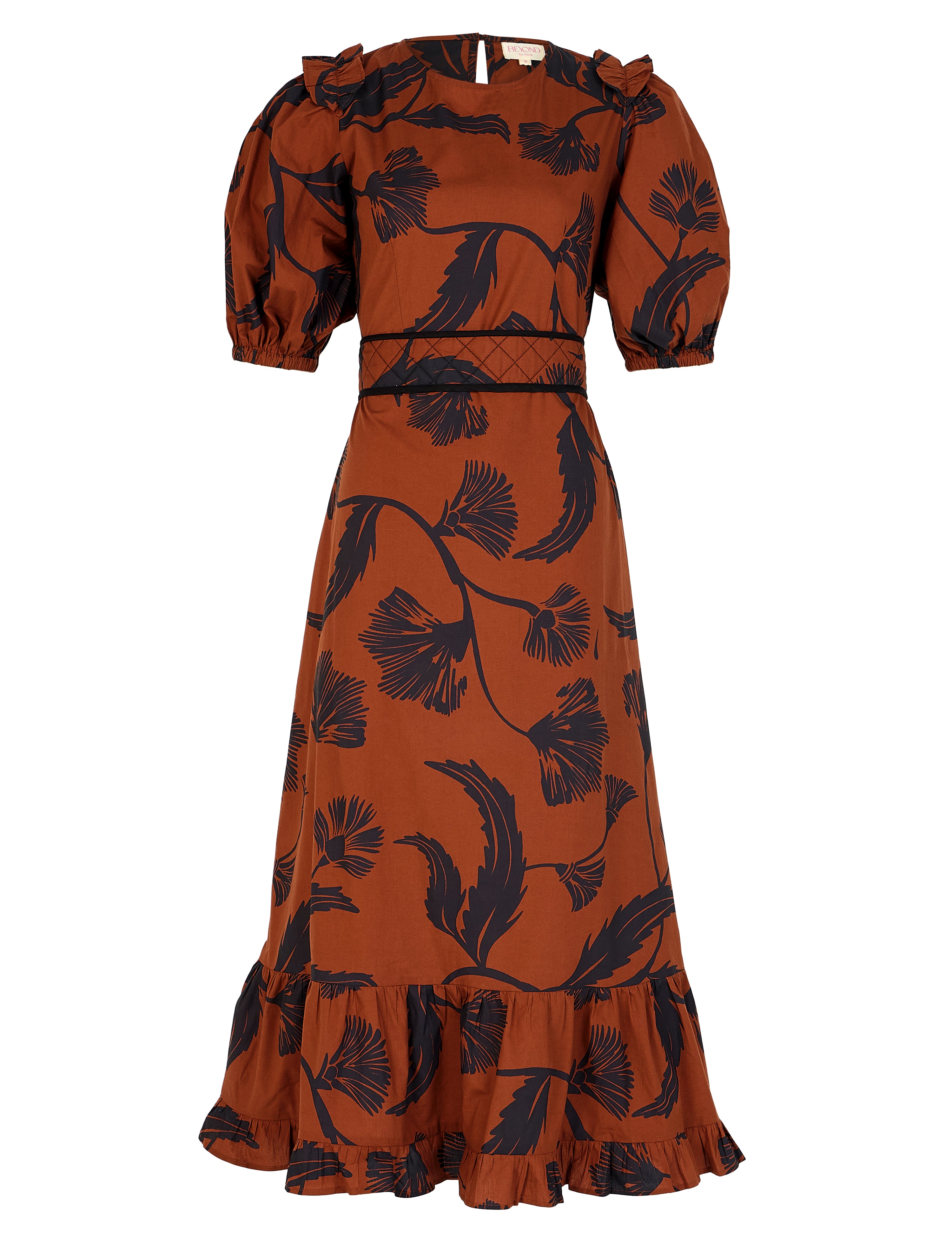 The Lennon skirt is a chic mini with a subtle A-line silhouette, designed to balance style and practicality. Crafted from quilted fabric, it offers a touch of warmth while maintaining a polished look. Perfectly paired with the Lexie vest for a coordinated outfit or styled simply with a tee or blouse, the Lennon skirt is a versatile wardrobe staple. Lennon is crafted from crisp cotton poplin, breathable and soft against the skin. ‘Noir Bloom’ captures the graceful interplay of shadows formed by leaves and florals under the fading light of the setting sun.