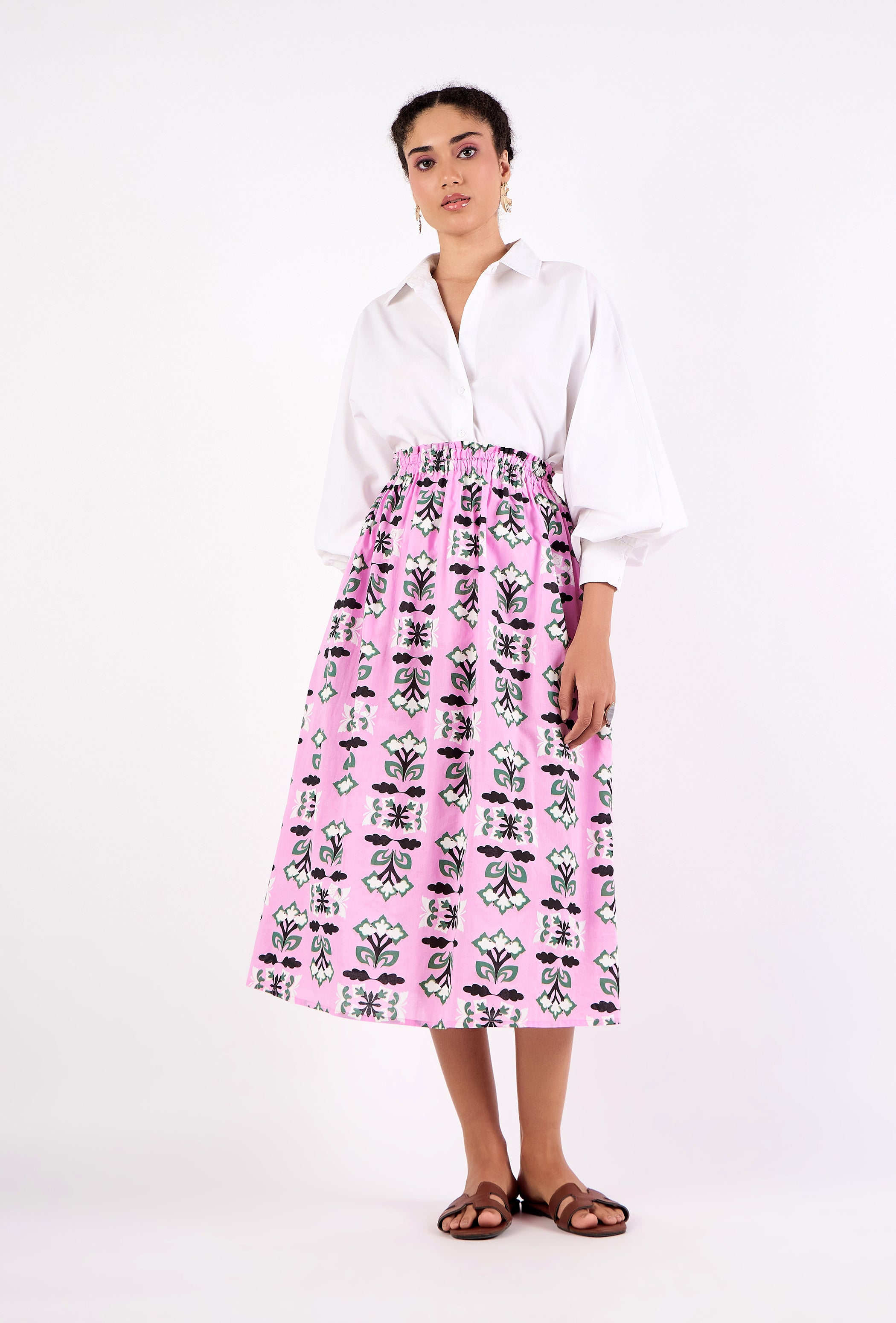 With its slightly puffed 3/4 sleeves, relaxed cut and delicate ruffle details, the Stella is a winner all year round. Pair it with our Gia Midi skirt or with Denim for a casual look. Stella is made from a soft, breathable cotton cambric fabric. Taking cues from the spectacular butterflies native to the Pyrenees, this design uses simple flower and butterfly motifs to create a captivating geometric pattern.