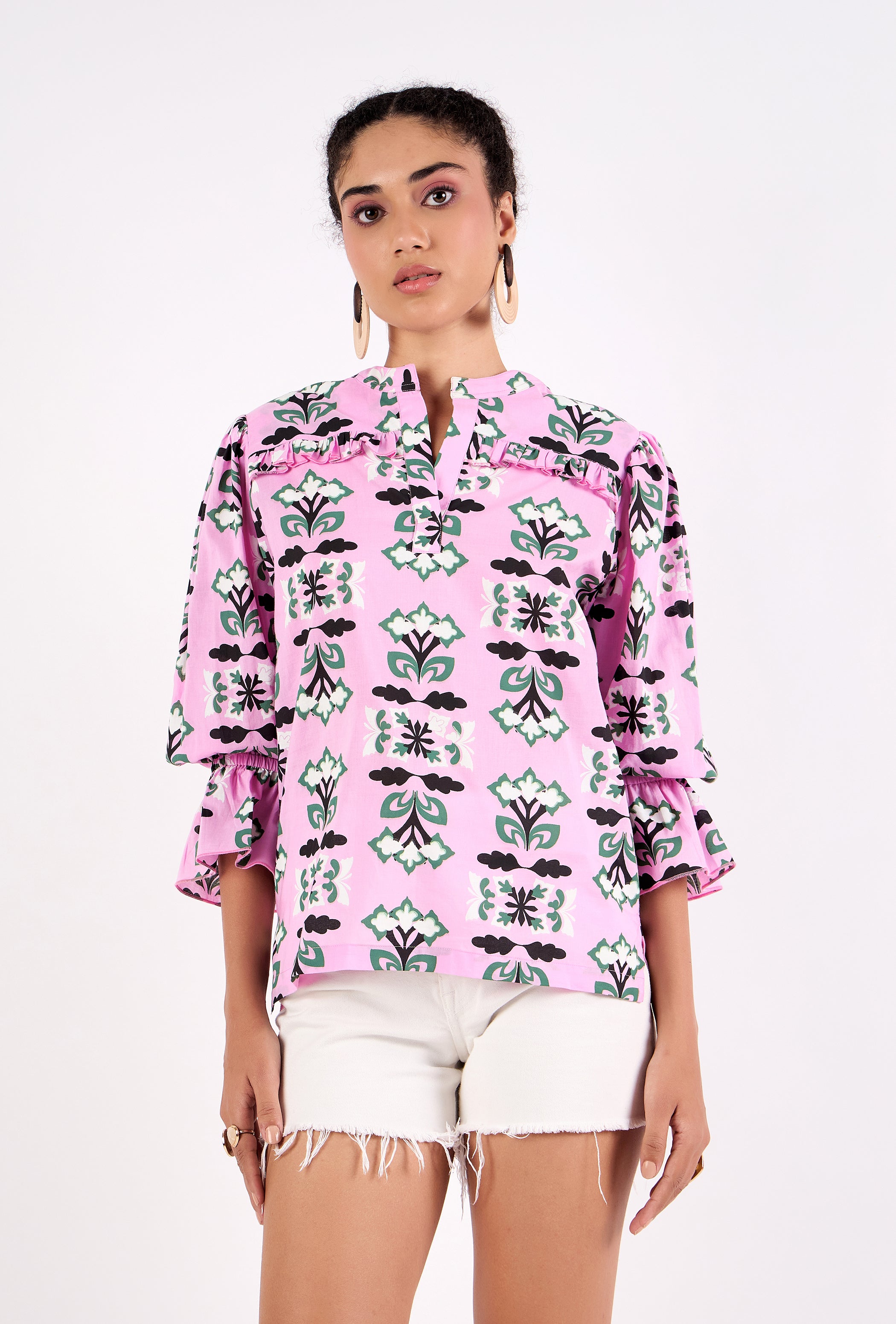 Bella's outer layer showcases our stunning hand-drawn print and is lined with recycled block-printed fabric. The drawstring closure adds a feminine touch, while the gathered fabric at the handles enhances its elegant design. Sturdy mango wood handles bring a natural, earthy element. This quilted bucket bag is a chic accessory that effortlessly elevates any outfit.
