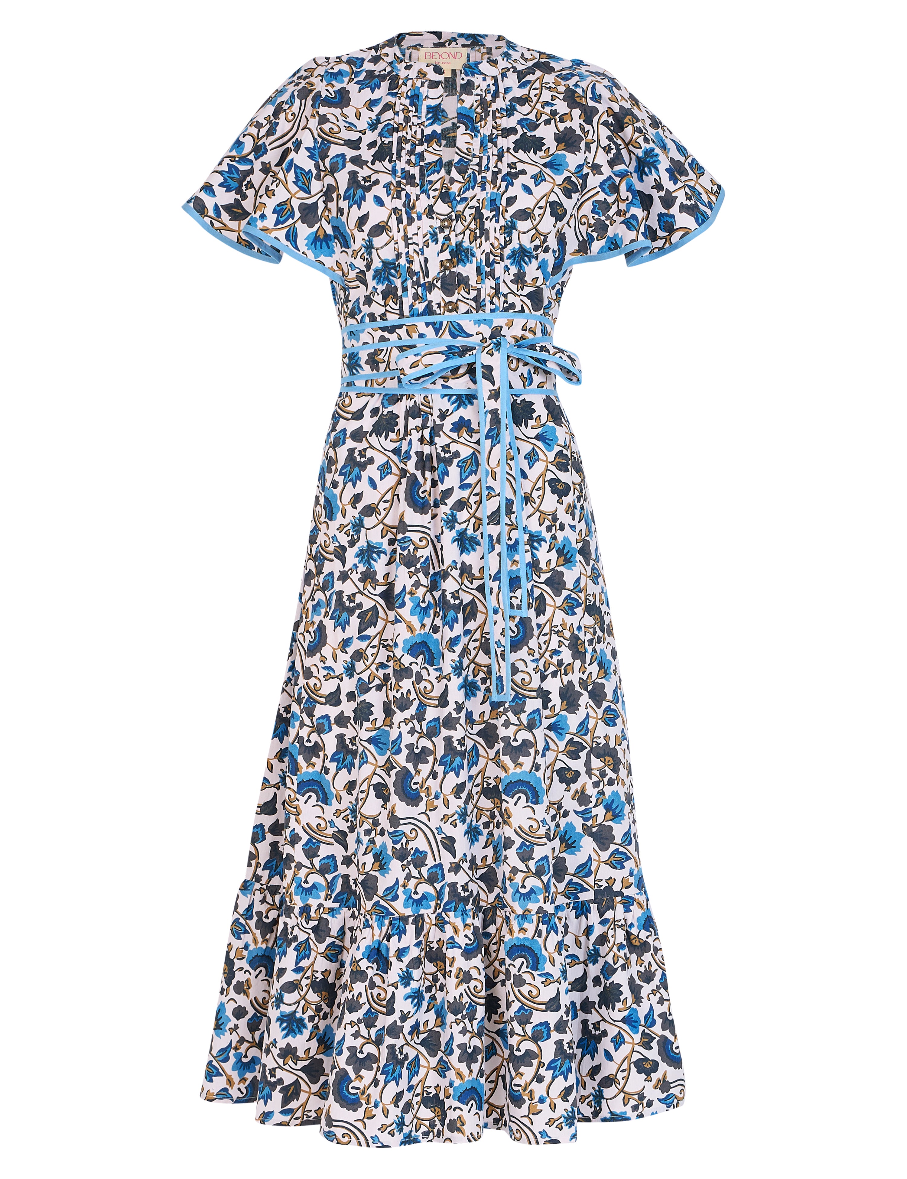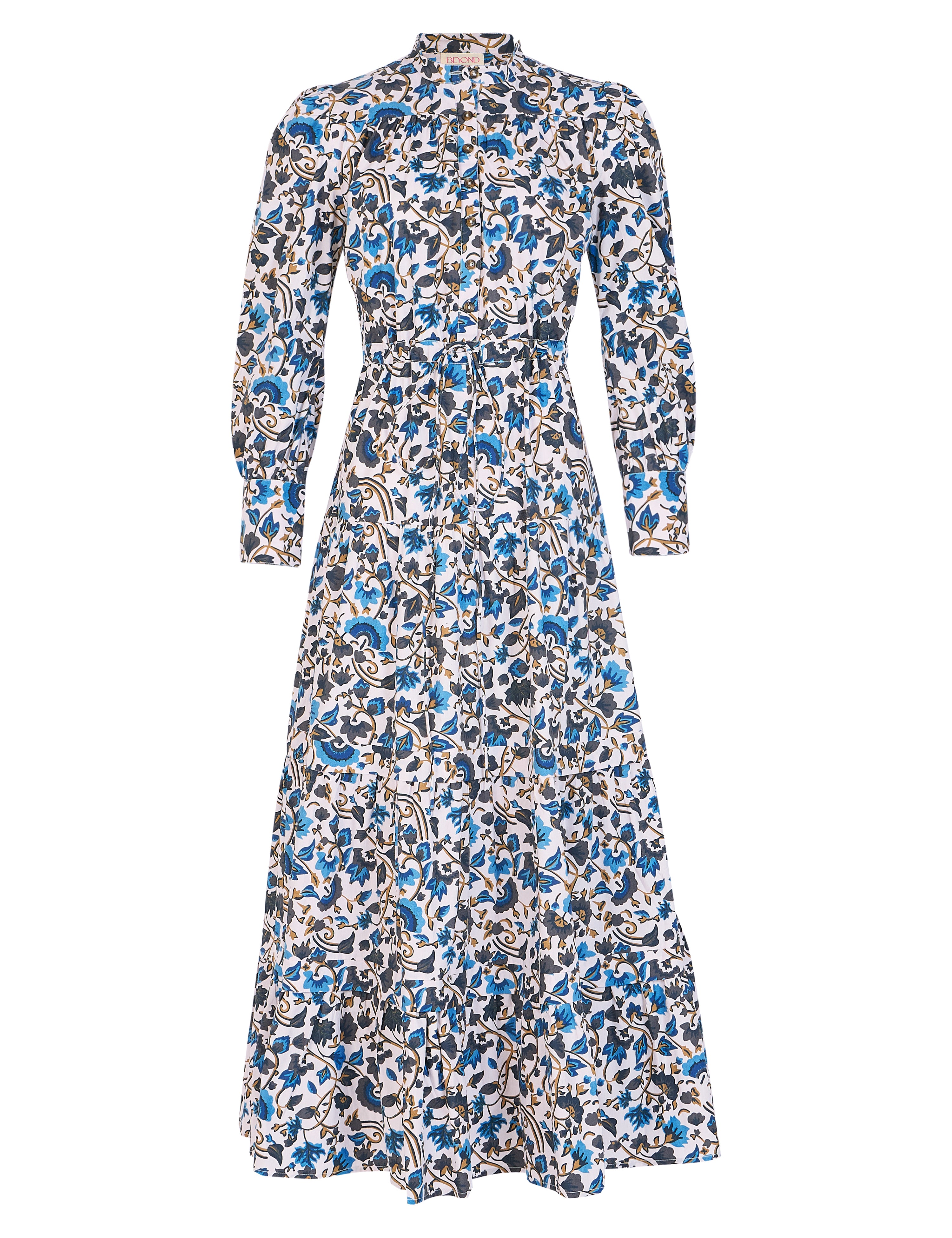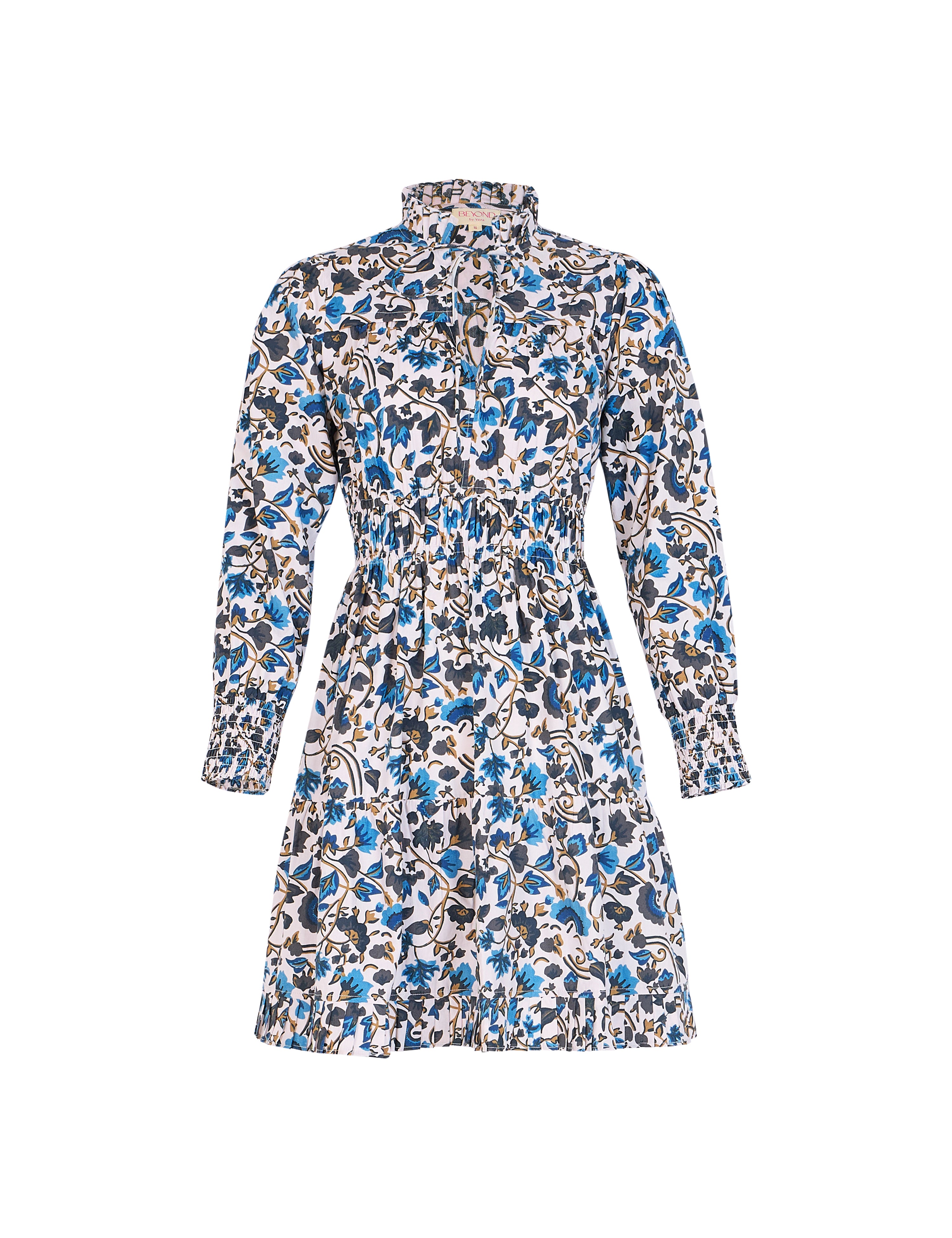 Our showstopper Alice dress features an elastic waist and smocked cuffs for a comfortable fit. The pleats on the collar, skirt and bodice give it a romantic touch. Alice is crafted from crisp cotton poplin, breathable and soft against the skin. The print is inspired by the last blooms of the season, scattered across the ground as autumn settles in, capturing nature’s final flourish before winter.