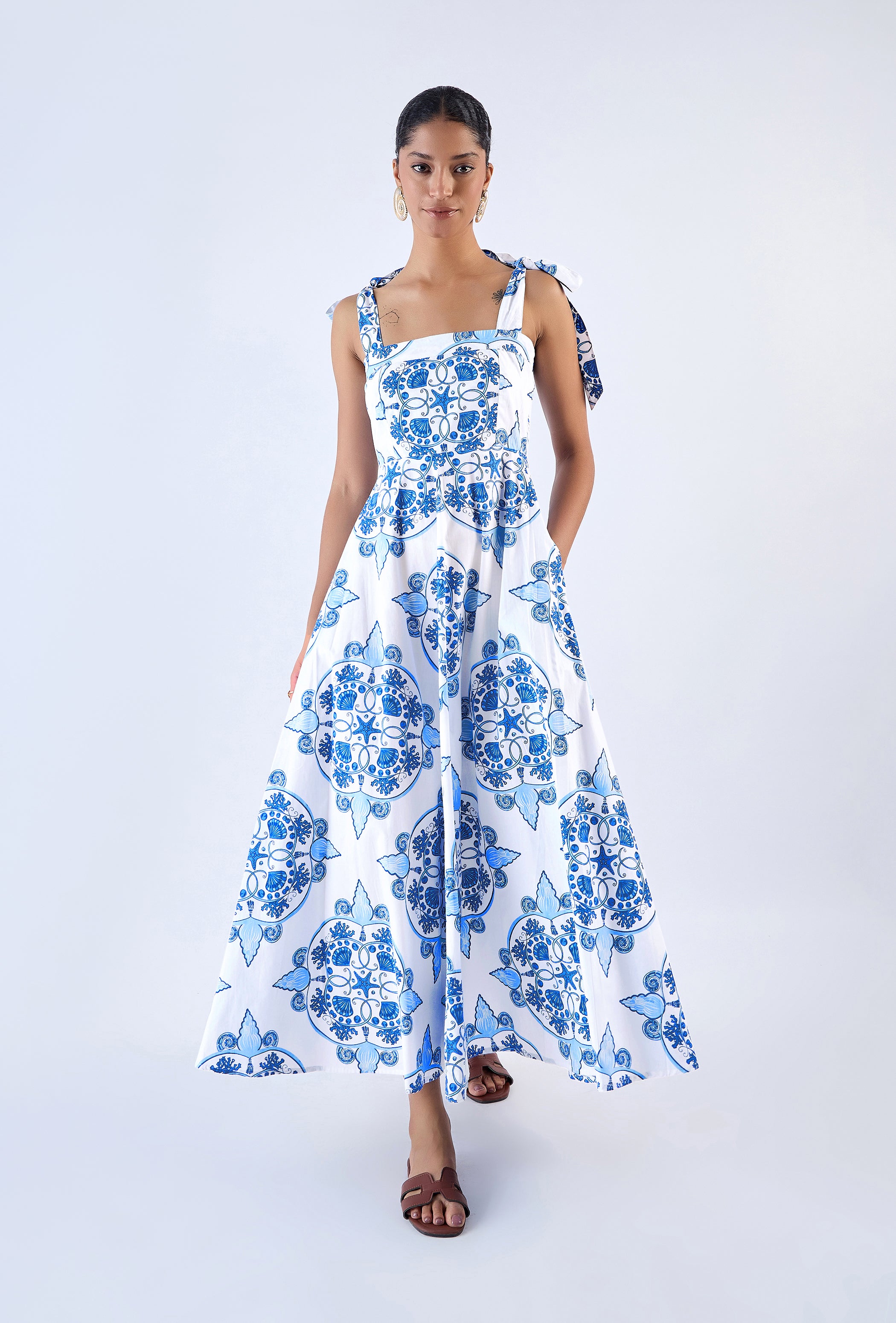 Discover Pearl, a striking new silhouette with a square neckline and fitted bodice, complemented by adjustable tie shoulder straps. The wide, airy A-line skirt adds an enchanting play of shape and movement. Effortlessly chic and full of style, it's the ultimate choice for standing out at any event. Pearl is crafted from breathable premium Cotton Poplin. Journey back in time with our ‘Nautilus’ print design, echoing the exquisite k19th century shell drawings of renowned French naturalist Jean Charles Chenu.