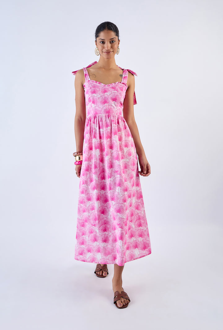 With a nod to vintage 60s silhouettes, the Jackie dress showcases a sweetheart neckline, fitted bodice, and flattering A-line design. Channel modern romance with this dress perfect for date nights, champagne-filled soirées, and garden parties. Jackie is made from a soft, breathable cotton cambric fabric. This monochrome print design ‘Serenity’ is inspired by the untamed beauty of a shoreline enveloped by wild palm trees. Each delicate stroke captures the serenity of swaying palms against the backdrop of a pristine coastline.