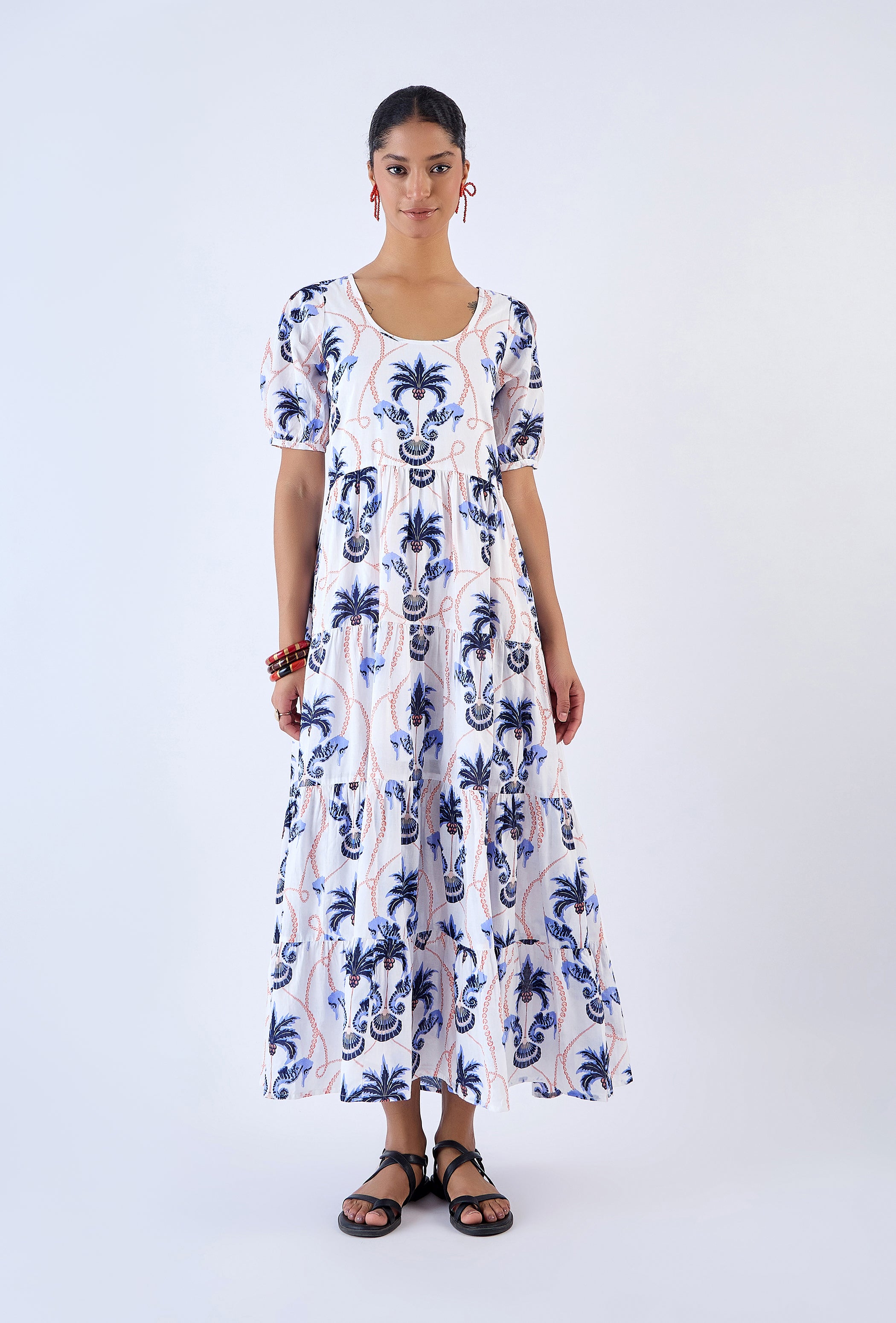 The Alice is the perfect mini dress for sun-filled days and tropical nights. The pleats, smocking details, deep V-neck and flattering shape make Alice a true showstop- per. Alice is made from a soft, breathable cotton cambric fabric. Inspired by the adventure of sailing to a secluded island, ‘Paradise Island’ references the pristine beauty of an untouched shore.