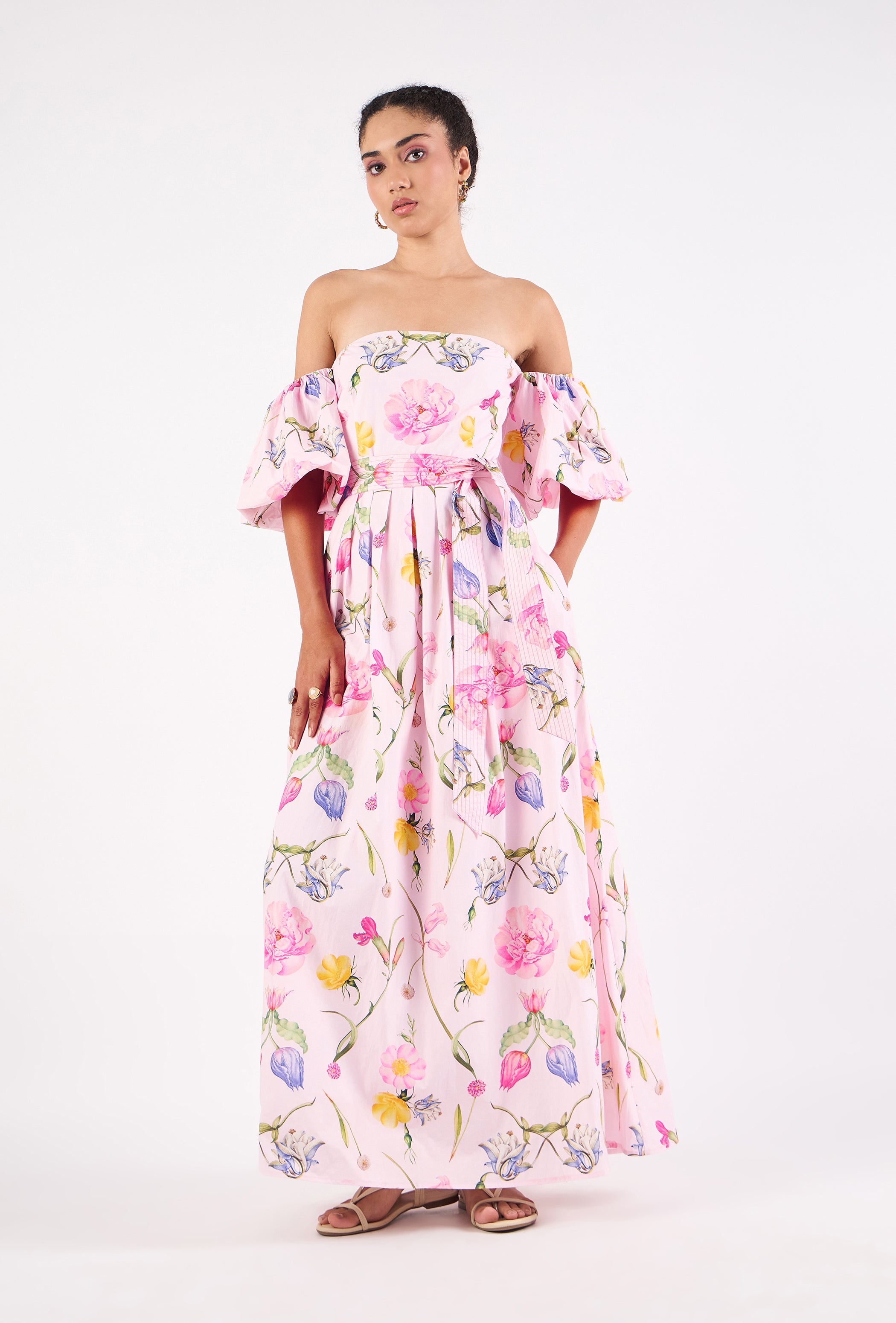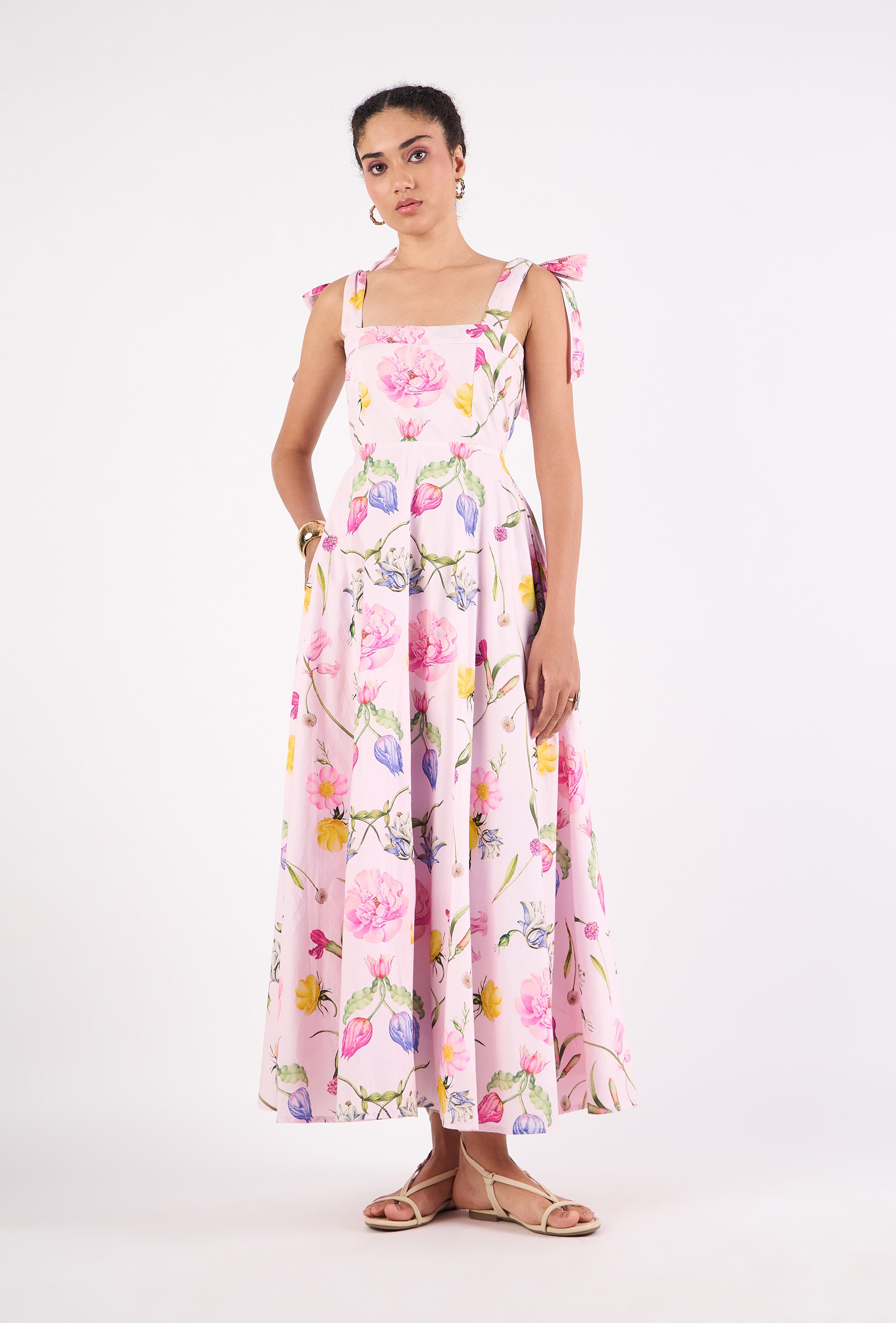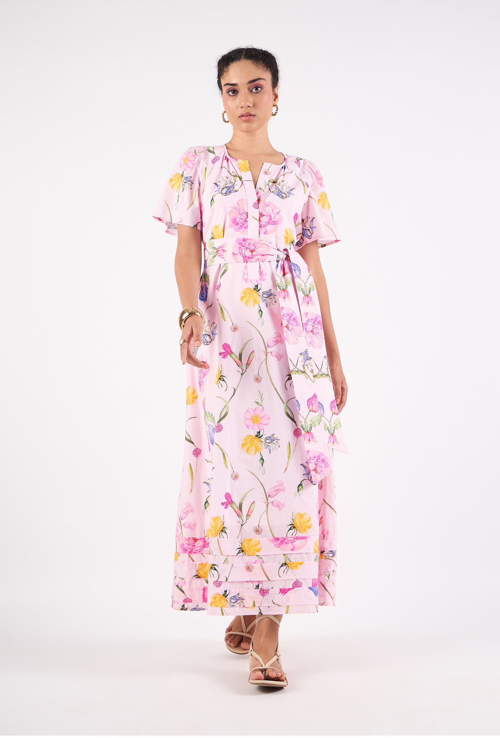 Meet Suzi, a versatile new silhouette designed to flatter all body types. The pullover midi dress boasts an adjustable V-neckline, semi-puff, straight sleeves and A-line skirt with pin-tucked details. The relaxed waist can be cinched with the included belt, making it an ideal dress to elevate your everyday style. Suzi is crafted from breathable premium Cotton Poplin. Drawing inspiration from the traditional perfume-making craft in Provence, this print evokes the magic of turning jasmine, iris and roses into an alluring fragrance.
