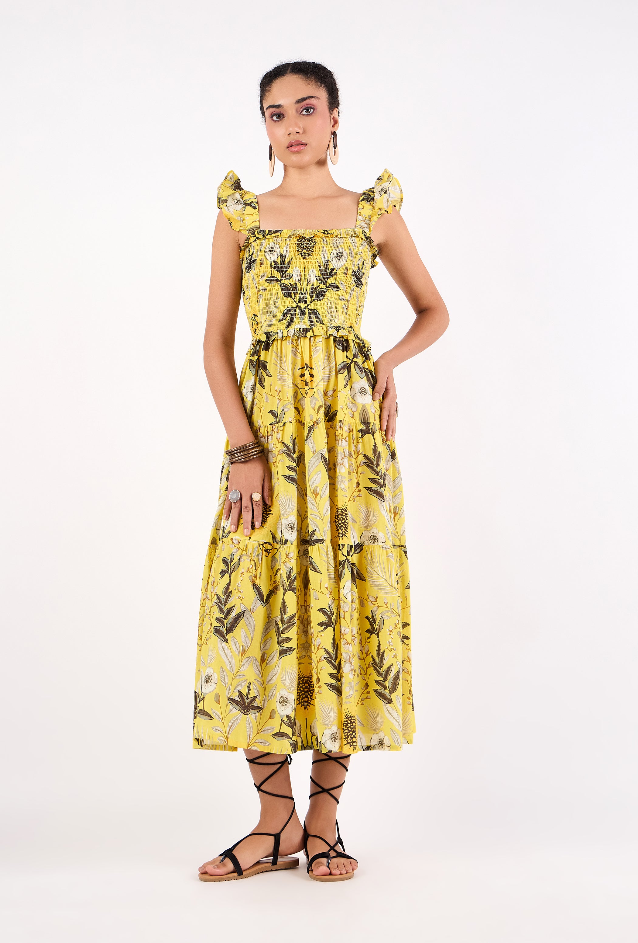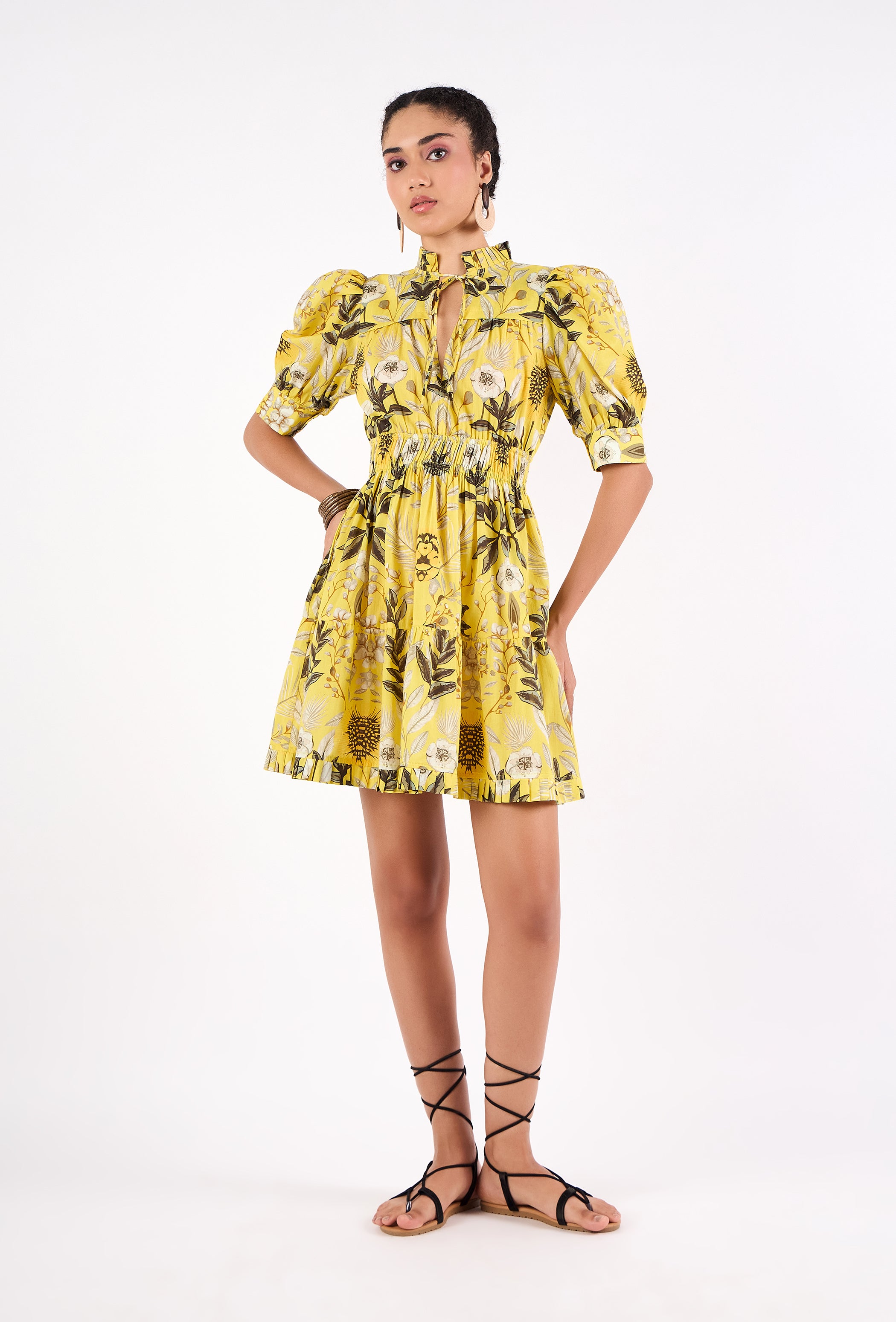 The Alice is the perfect mini dress for sun-filled days and tropical nights. The pleats, smocking details, deep V-neck and flattering shape make Alice a true showstop- per. Alice is made from a soft, breathable cotton cambric fabric. This print captures the enchanting beauty of Claude Monet's garden in Normandy, famously depicted in the paintings of the renowned French painter.