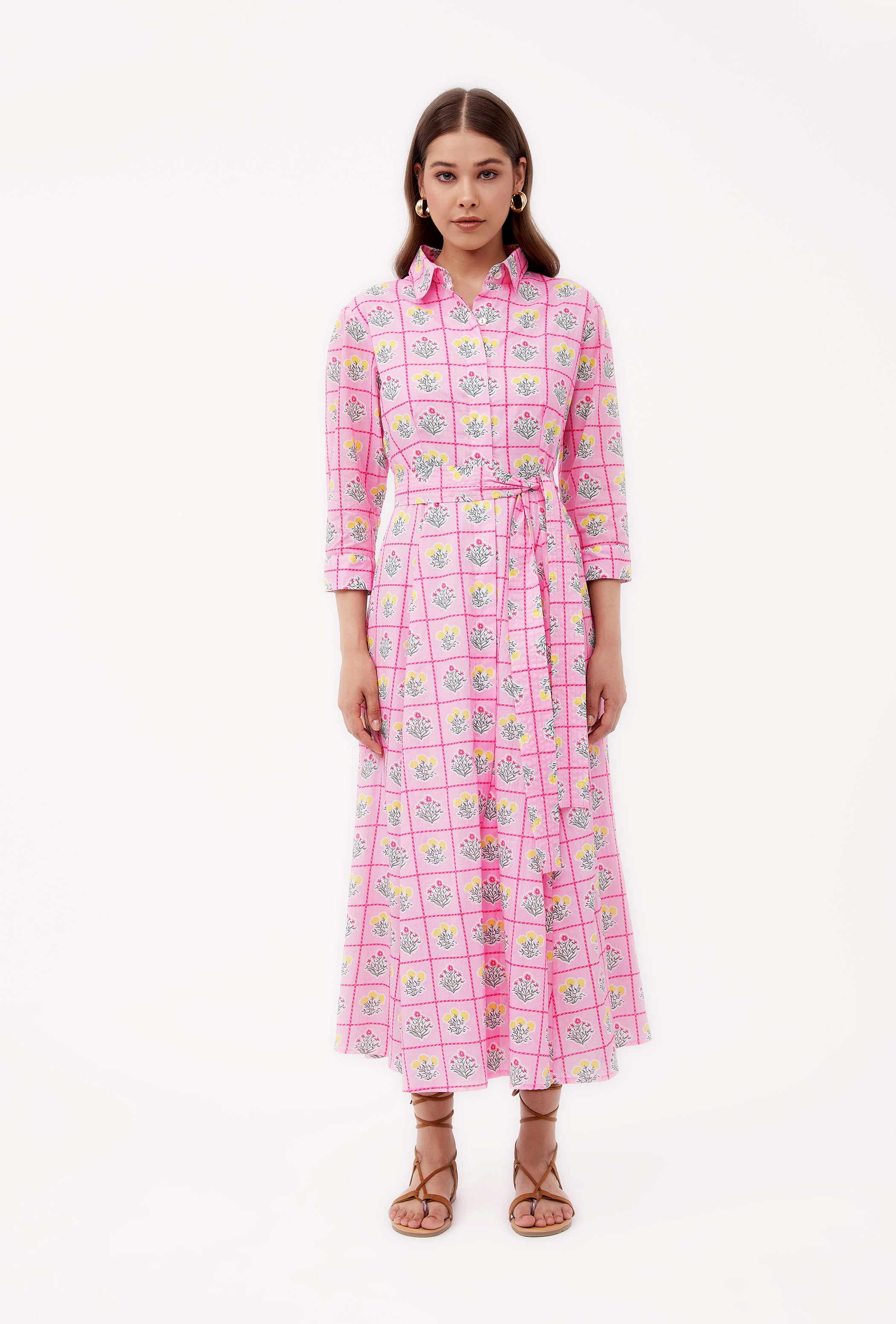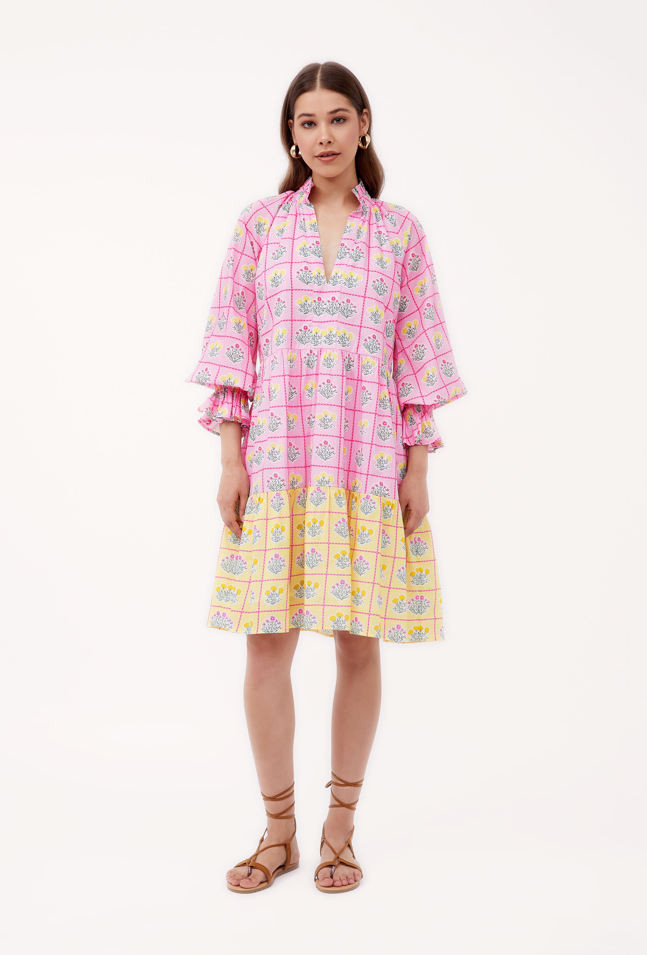 The Juliet is a flirty and effortless silhouette featuring a V-neckline and billowing sleeves. The pleats at the neck and tiered bottom give it an elegant touch. Juliet is made from a soft, breathable cotton cambric fabric that will keep you cool on a hot summer day. Inspired by a sun-drenched beach day, the artwork references the sorbet-colored beach umbrellas dotting Positano's coastline.