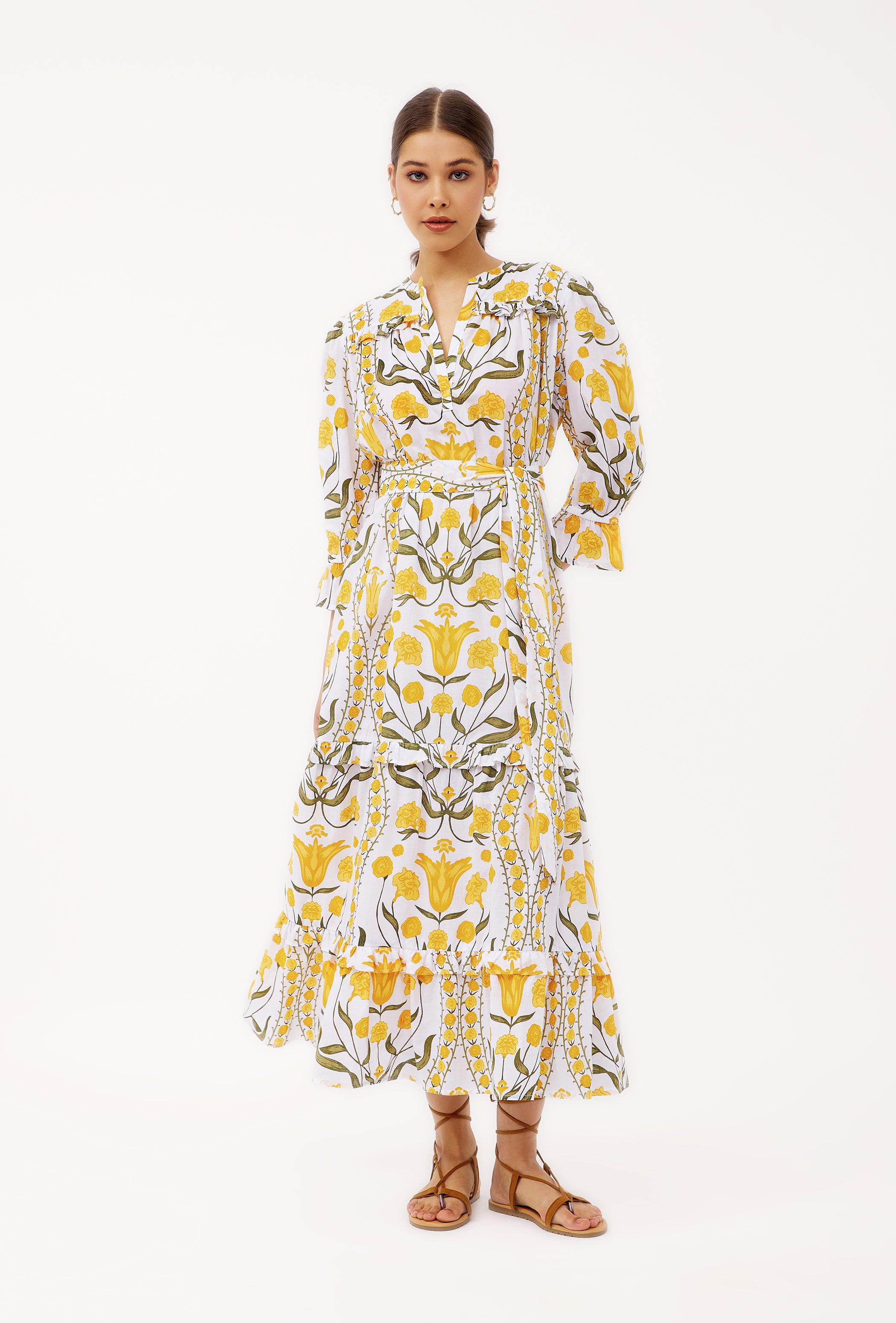 Featuring a flattering A-line silhouette, a smocked top for a perfect fit, and delicate puff sleeves that can be worn off-shoulder, this midi dress exudes a sense of summer romance. Whether you're savoring a gelato on a hot summer day or enjoy a garden party with your besties, the Maria dress will effortlessly elevate your daytime adventures. Maria is made from a soft, breathable cotton cambric fabric that will keep you cool on a hot summer day. This floral print embodies an Italian countryside summer, running through flower-filled fields, exuding freedom and joy.