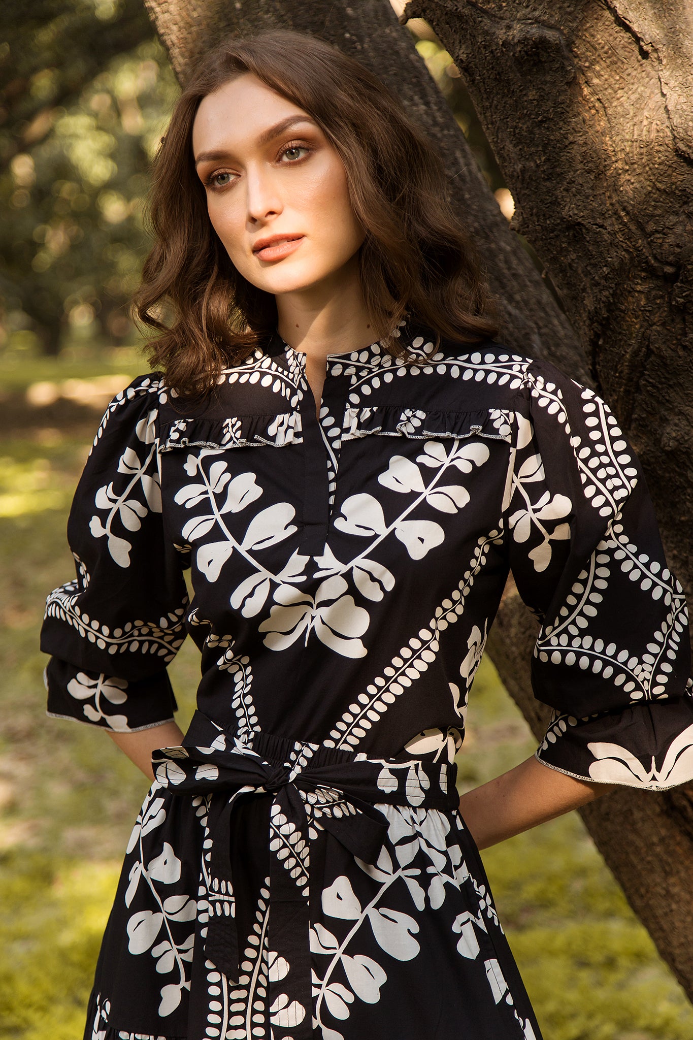With its slightly puffed 3/4 sleeves, relaxed cut and delicate ruffle details, the Stella is a winner all year round. Pair it with our Gia Midi skirt or with Denim for a casual look. Stella is made from soft, breathable cotton. With this print, designer Vera Fritsch takes you on a journey to “Styria”, her home region in Austria. Because of its dense forests and lush meadows, it is often called the “Green Heart” of Austria.