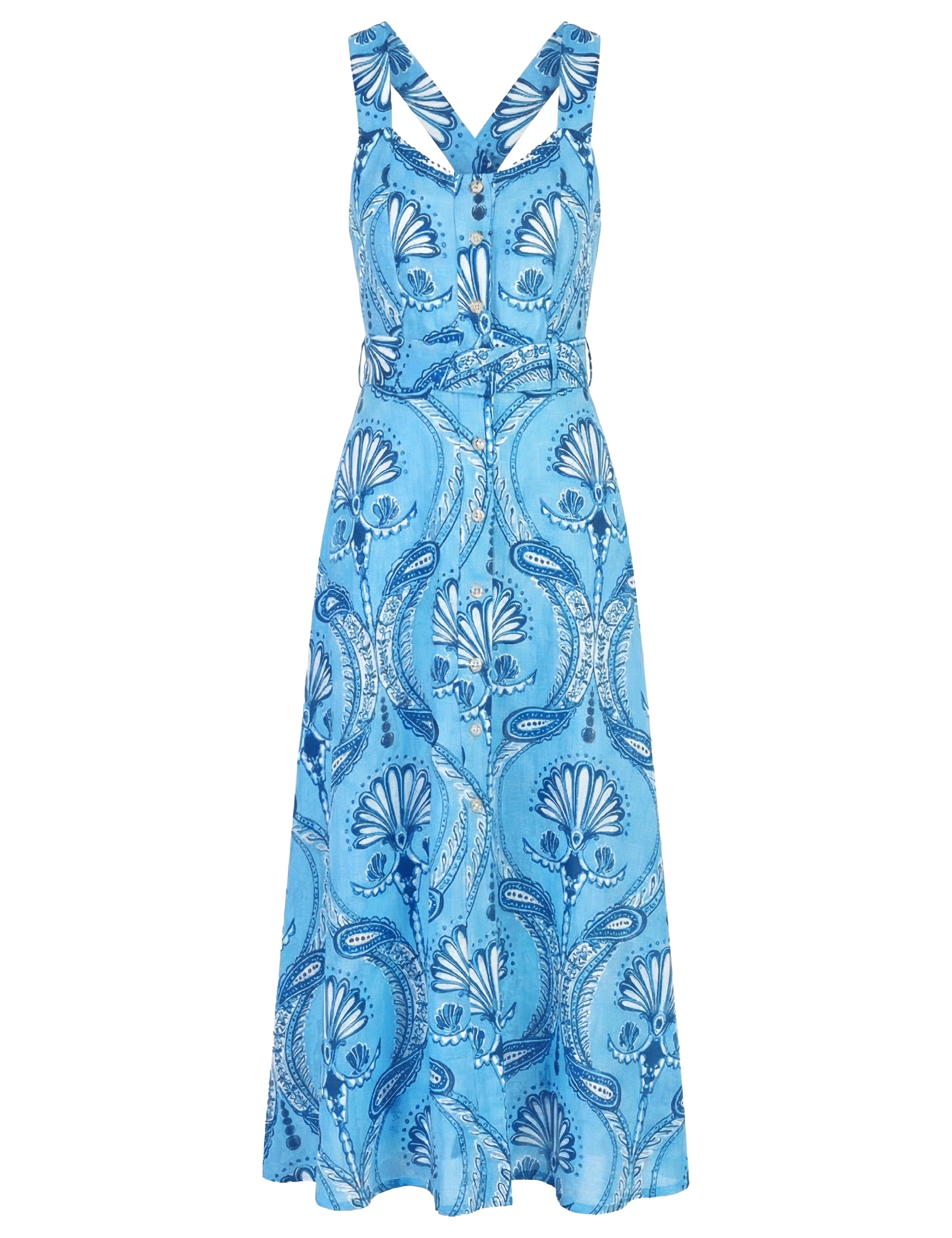 Meet Suzi, a versatile silhouette designed to flatter all body types. The pullover midi dress boasts an adjustable V-neckline, semi-puff, straight sleeves and A-line skirt with pin-tucked details. The relaxed waist can be cinched with the included belt, making it an ideal dress to elevate your everyday style. Suzi is crafted from a unique blend of cotton and linen, offering a soft, breathable feel and a beautifully textured finish. This print brings to life the spirit of ’60s-era dinner revues in Palm Beach where feathered dancers, champagne towers, and sparkling glamour lit up the night.